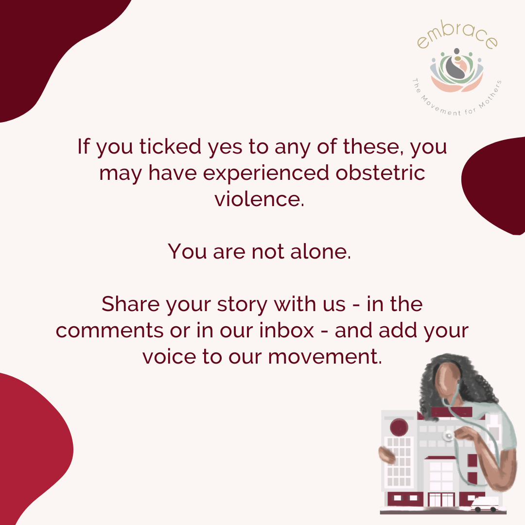 I was then moved with baby to the admissions ward and thought I would be discharged but because of the amount of women that needed to be discharged before me they kept me the night. The nurses who did their rounds came to check me and once again she stuck her hands inside of me but this time she had a bit more sympathy and said she had to check and make sure that nothing was left inside of me because “they used to leaving stuff inside of patients”.